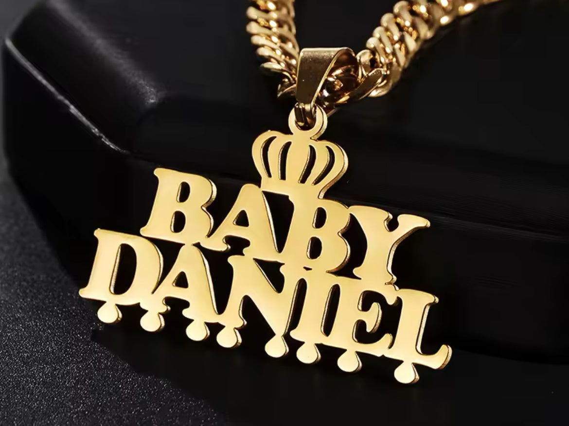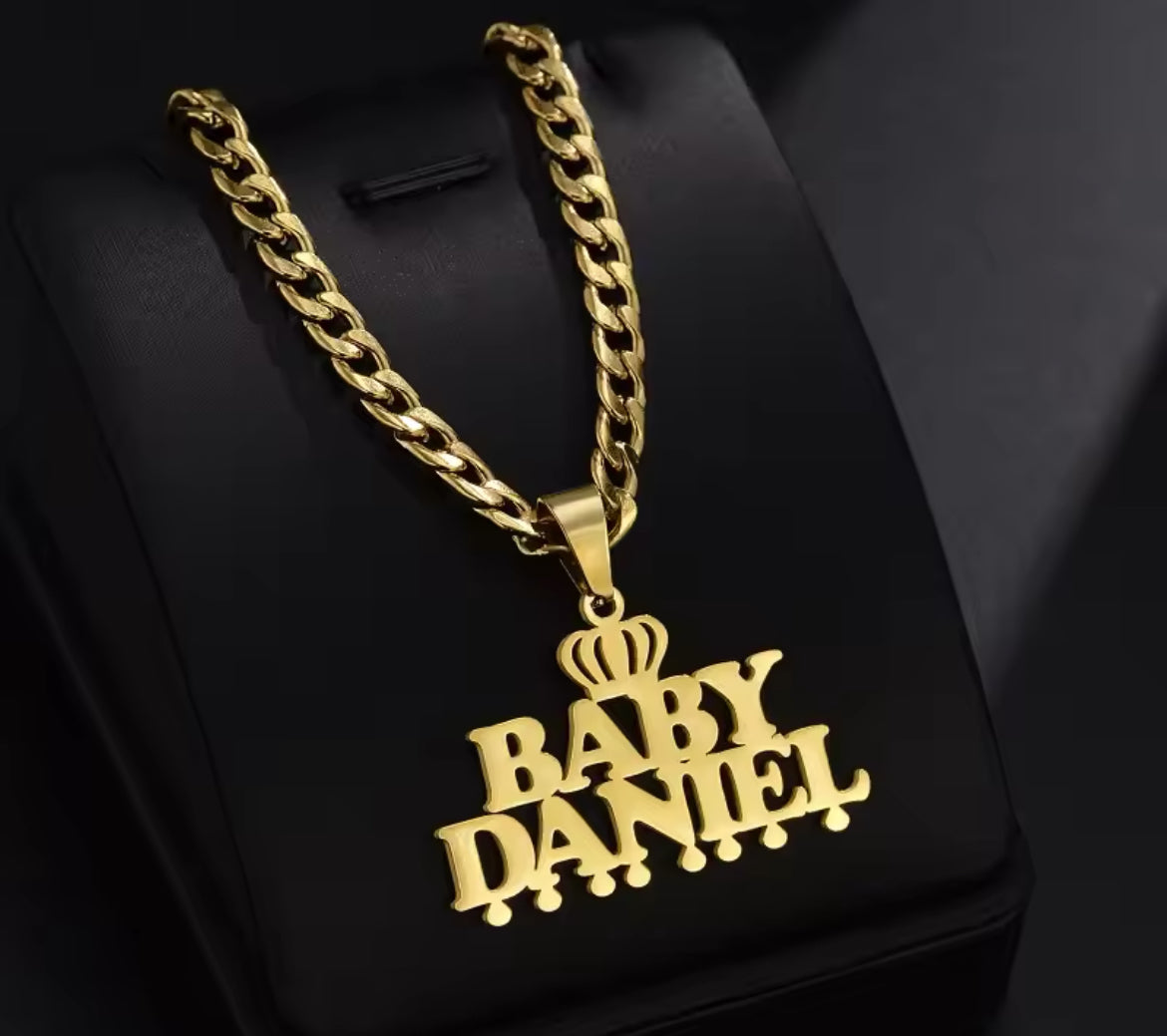 Treat your little one to a touch of royal sweetness with the Chocolate Crown Necklace. This trendy piece features a personalized baby letter pendant topped with a charming crown, paired with a sturdy 5mm thick stainless steel chain—making it a delightful gift for any young prince or princess.