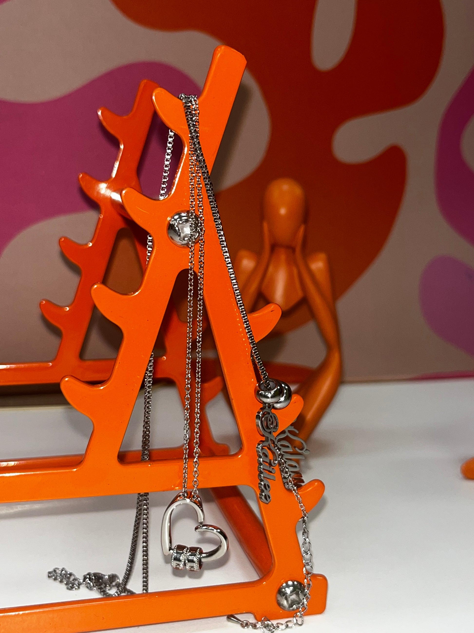 The custom name necklace features vertical names and is available in silver, gold, and rose gold. This personalized jewelry piece allows you to have up to three names engraved in a stylish vertical layout, making it a unique and meaningful accessory. Ideal for gifting or personal use, the necklace combines elegance with personal sentiment, creating a timeless keepsake.